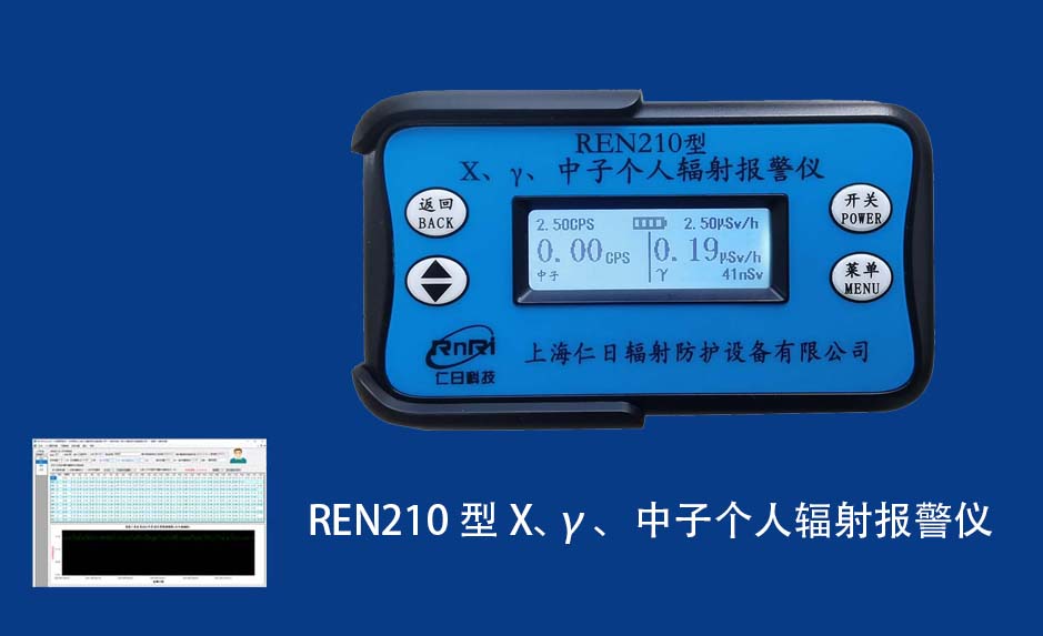 REN210型X、γ、中子個人輻射報警儀內(nèi)置SiPM和鋰玻璃晶體組成中子探測器儀器,采用反照率方式探測中子射線,同時也能探測X、γ射線。因此它可同事監(jiān)檢測X、γ、中子三種射線。能顯示工作場所的劑量當(dāng)量率和累積劑量,更換電池時,日期及累積數(shù)據(jù)能永久保存?蛇x配RenRiPersonal個人劑量管理軟件,該軟件可存儲多個人的歷史數(shù)據(jù),能記錄日累積、月累積、年累積、輻照時長、計算平均劑量率、扣除或不扣除本底輻射,且以文字和圖譜的方式展現(xiàn)數(shù)據(jù)。廣泛應(yīng)用于環(huán)保、化工、水泥、煤礦、土木工程、石油、醫(yī)院、疾控、進出口商檢、核電、加速器、機場、中子源庫和其他安檢、邊境控制海關(guān)檢測等領(lǐng)域中的工作人員進行個人安全防護監(jiān)測及放射性提示。